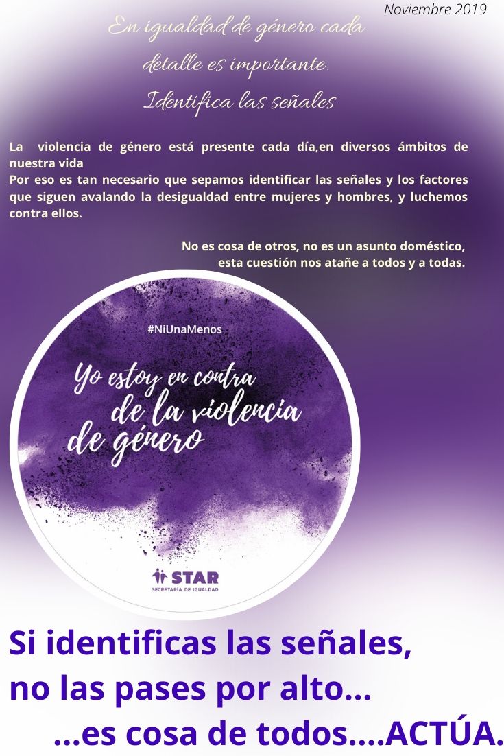 Desde el Sindicato STAR queremos llamar a la reflexión e implicación de toda la sociedad, de forma que cada uno sea capaz de identificar aquellas señales que llevan a la desigualdad en nuestro día a día y actúe en consecuencia