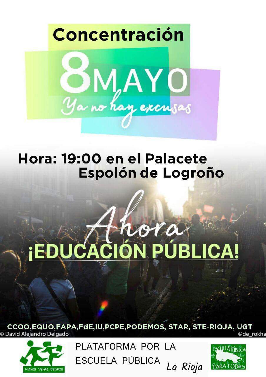 Concentración de este martes 8 de mayo de la Plataforma por la Escuela Pública en La Rioja. Las principales reivindicaciones: