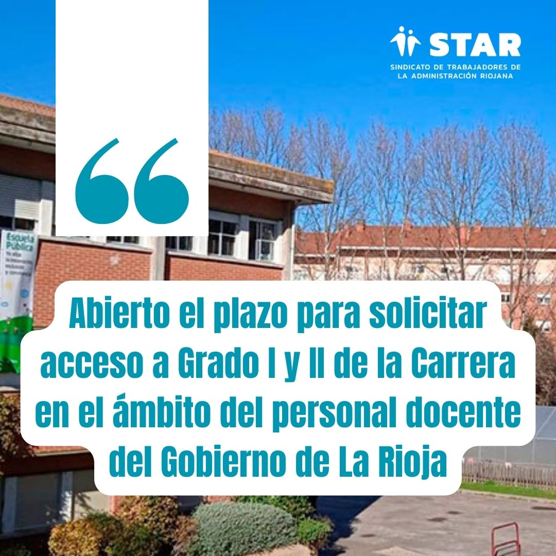 Con fecha de hoy 2 de mayo, comienza el plazo para solicitar el acceso al grado I y II de carrera horizontal para el año 2024 para el personal funcionario y laboral, que presta servicios en la Administración General de La Rioja.