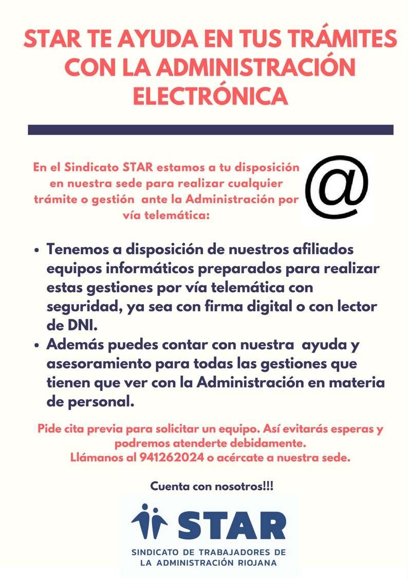 En el Sindicato STAR estamos a tu disposición en nuestra sede para realizar cualquier trámite o gestión ante la Administración por vía telemática