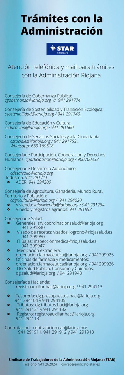 Trámites con la Administración Atención telefónica y mail para trámites con la Administración Riojana VER ARCHIVO