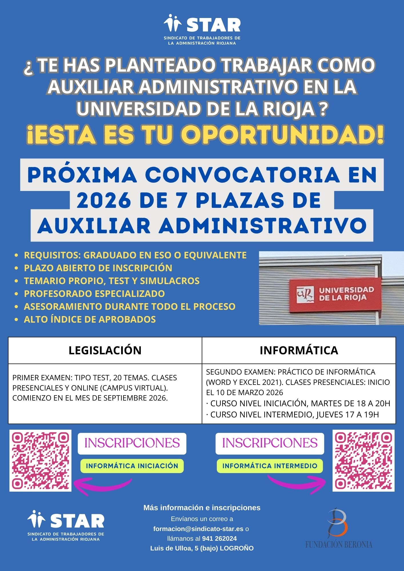 PRÓXIMA CONVOCATORIA EN 2026 DE 7 PLAZAS DE AUXILIAR ADMINISTRATIVO