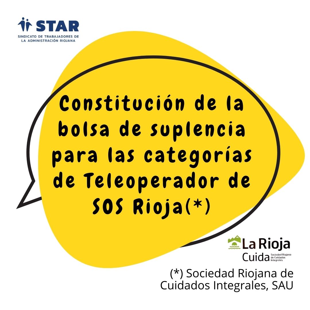 Se publica en el tablón virtual de la página del Gobierno de La Rioja, las bases para la constitución de la bolsa de suplencia para las categorías de: teleoperador de SOS Rioja