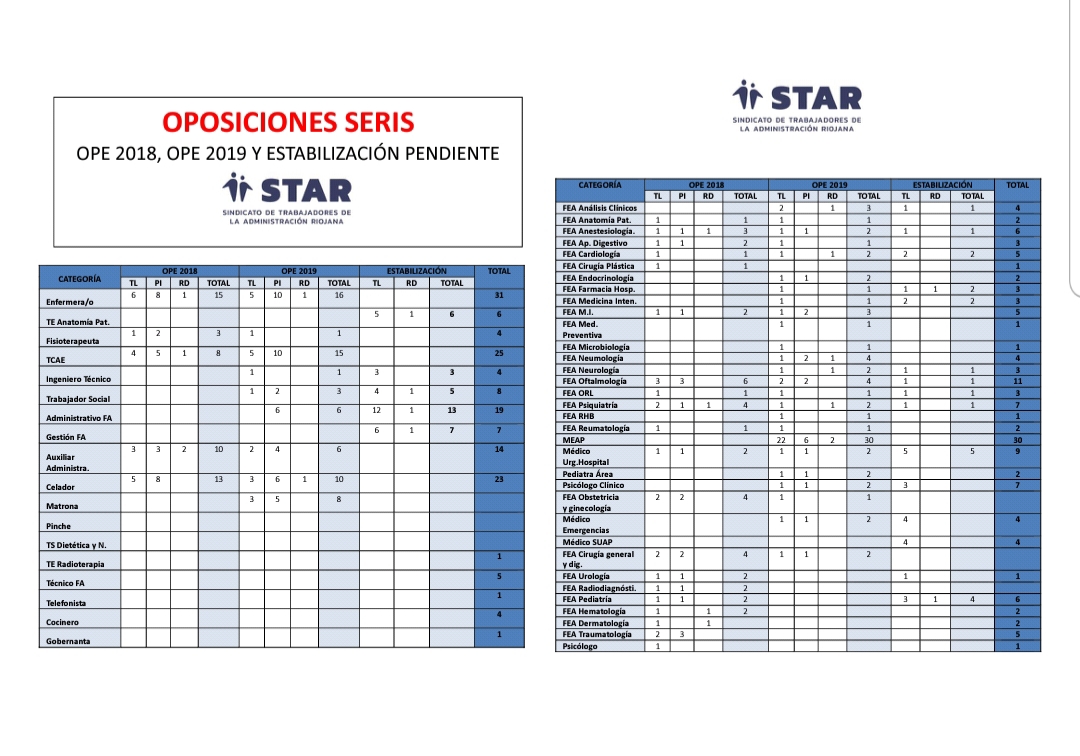 OFERTA PÚBLICA DE EMPLEO SERIS.- Aprobada en Mesa Sectorial de SERIS de 26 de noviembre se aprueba la Oferta de Empleo Público de 2018, 2019 y Estabilización para el Servicio Riojano de Salud. A continuación puedes ver todas la oferta detallada: