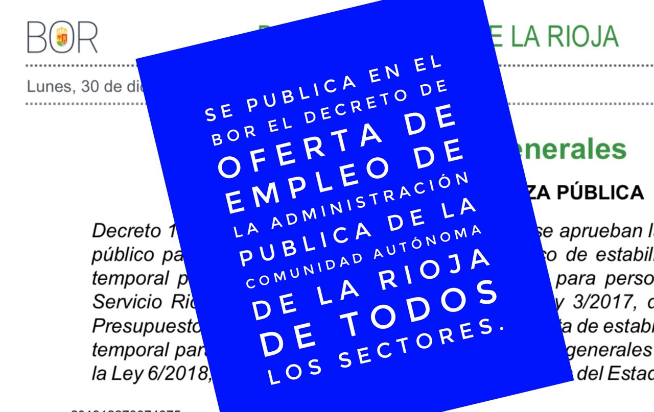 Publicado el Decreto de Oferta de Empleo Público en la Administración Autonómica. En el siguiente enlace puedes ver toda la Oferta de empleo para el año 2019 y la Oferta extraordinaria de Estabilización 2019 de personal funcionario y laboral de la Administración General, personal docente no universitario y personal estatutario del Servicio Riojano de Salud. Consultanos!!