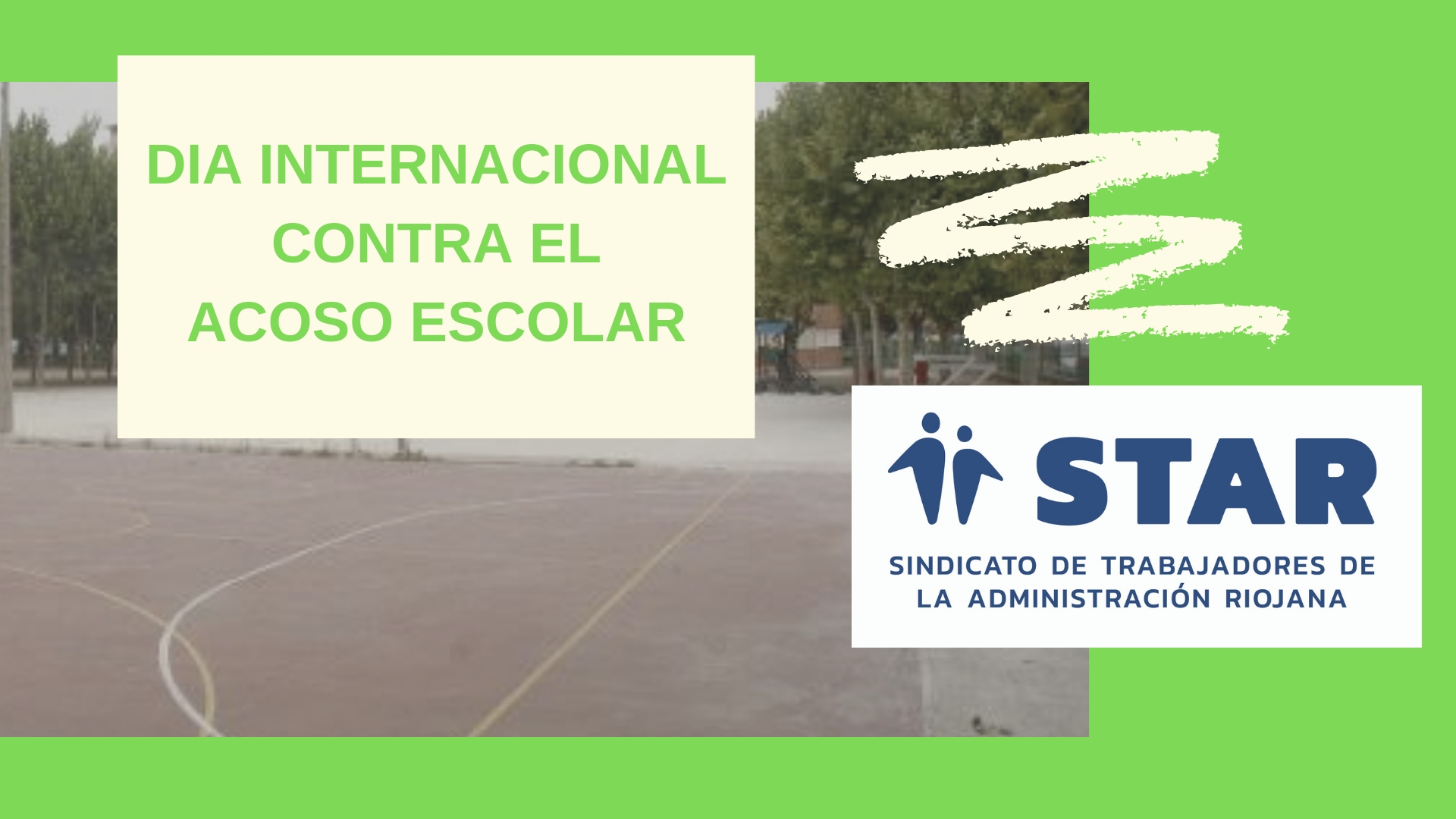 En el Día Internacional contra el Acoso Escolar STAR insta a la Consejería de Educación a insistir en su prevención en los centros educativos a través de una adecuada difusión para mejorar el funcionamiento del protocolo existente contra el Acoso Escolar, así como a ir más allá e incidir en el ámbito de la convivencia escolar para la prevención e intervención en casos de conductas contrarias a la convivencia.
