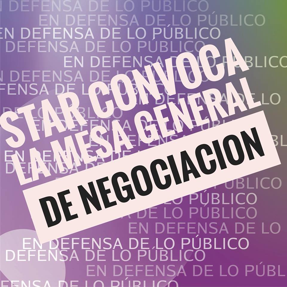 En el día de hoy se ha registrado escrito a través del cual el Sindicato STAR convoca a la Administración Autonómica a la celebración de una reunión con carácter de urgencia de la Mesa General de Negociación a fin de tratar sobre los siguientes asuntos: