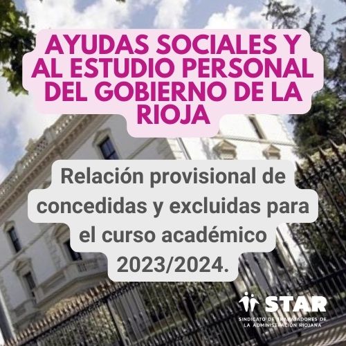 Se publica en el tablón virtual de la página del Gobierno de la Rioja, la relación provisional de las Ayudas Sociales y al Estudio concedidas y excluidas para el curso académico 2023/2024: