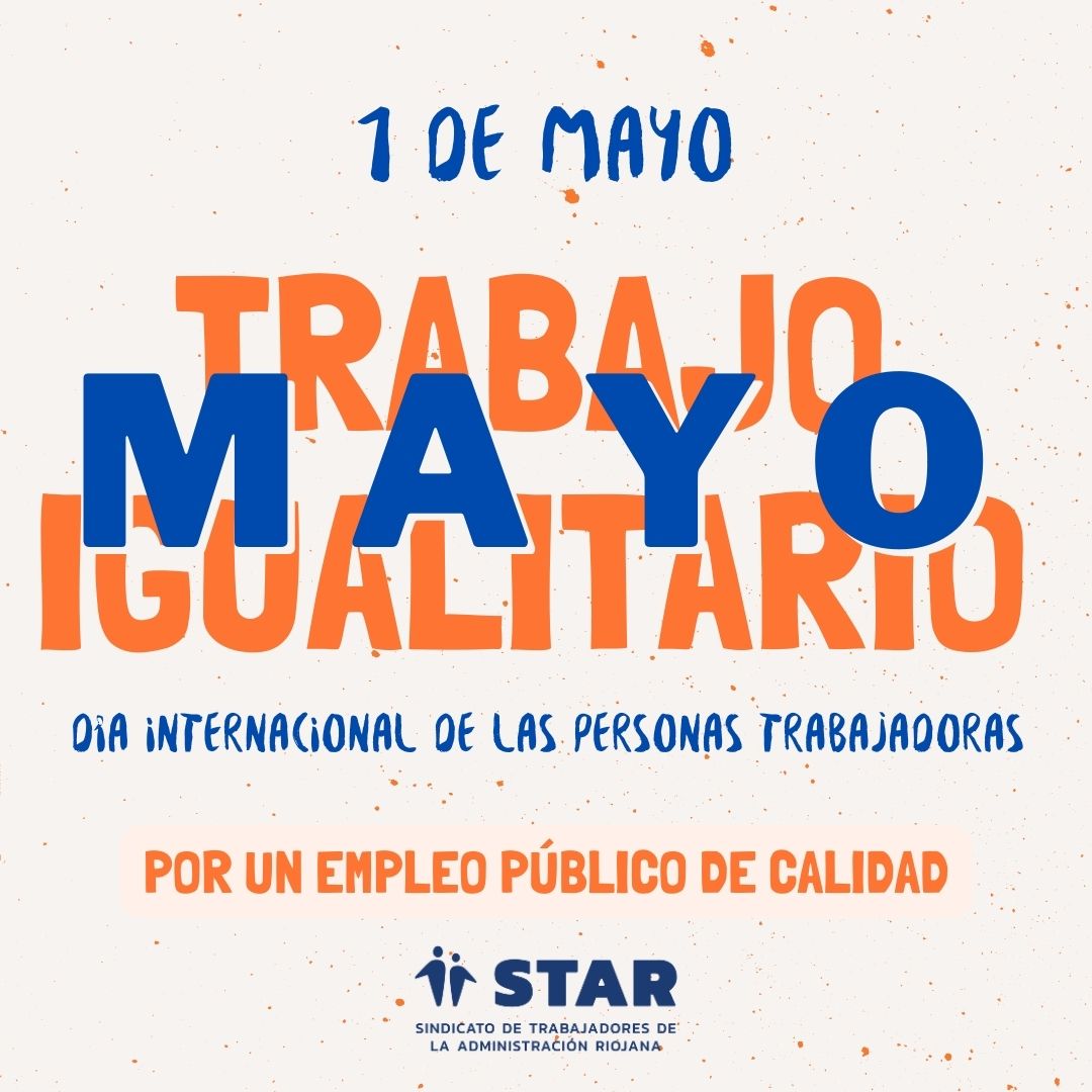 En el este Primero de Mayo, día internacional de las personas trabajadoras, jornada que se celebra en España desde 1890, desde STAR reclamamos un Empleo Público Igualitario y de Calidad.