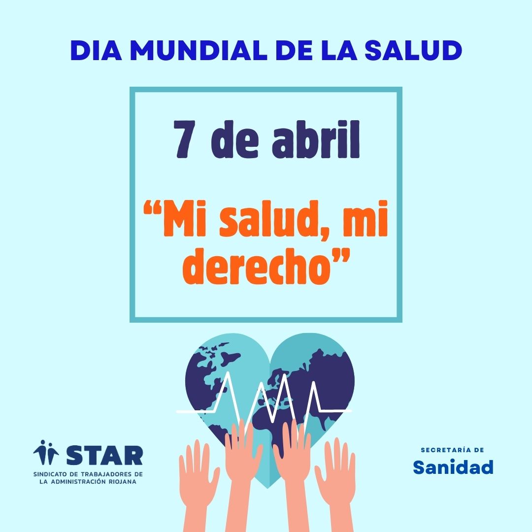 Este domingo 7 de abril se celebra el Día Mundial de la Salud, este año 2024 bajo el lema “Mi salud, mi derecho” y el Sindicato STAR quiere manifestar que la Sanidad Publica y sus profesionales son los principales garantes de que ese derecho llegue ser una realidad para todos los ciudadanos