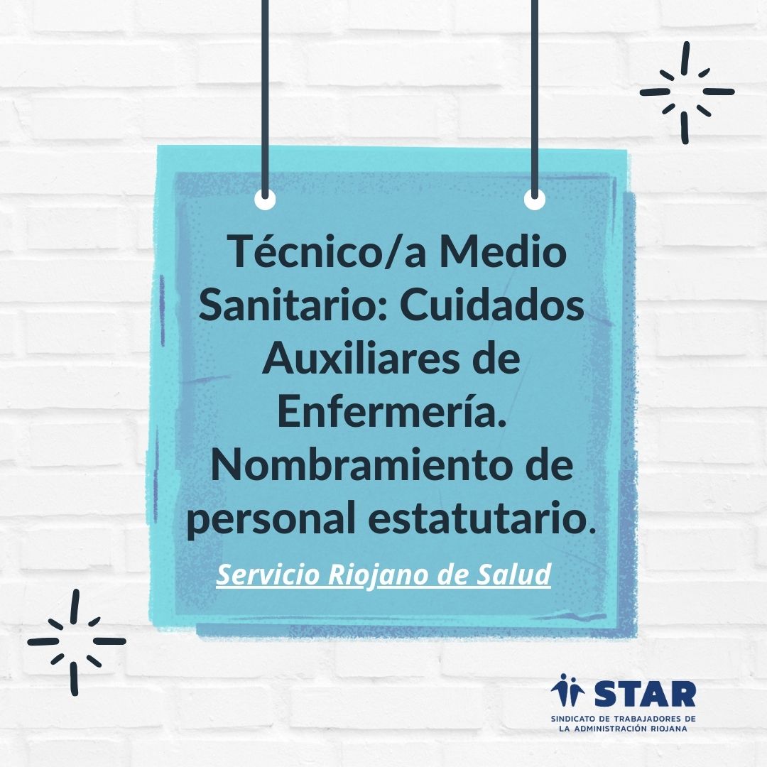 Se publica en el BOR la Resolución de 25 de marzo de 2024, de la Presidencia del Servicio Riojano de Salud, por la que se nombra personal estatutario fijo y se asignan plazas de la categoría Técnico/a Medio Sanitario: Cuidados Auxiliares de Enfermería. Ver enlace