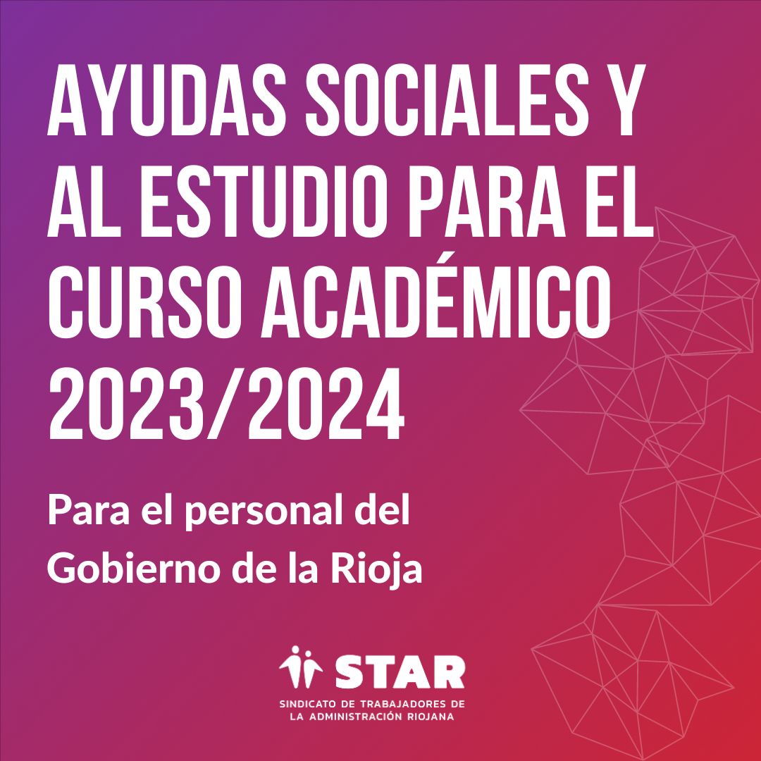 Con fecha de hoy se ha publicado en el Boletín Oficial de La Rioja la Orden HGS/16/2024, de 26 de marzo, por la que se establecen las bases y se inicia el procedimiento para la concesión de ayudas sociales y al estudio para el curso académico 2023/2024.