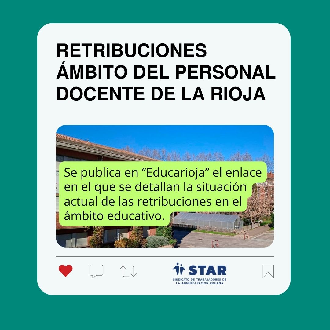 Se publica en “Educarioja” el enlace en el que se detallan la situación actual de las retribuciones actualizadas en el ámbito educativo