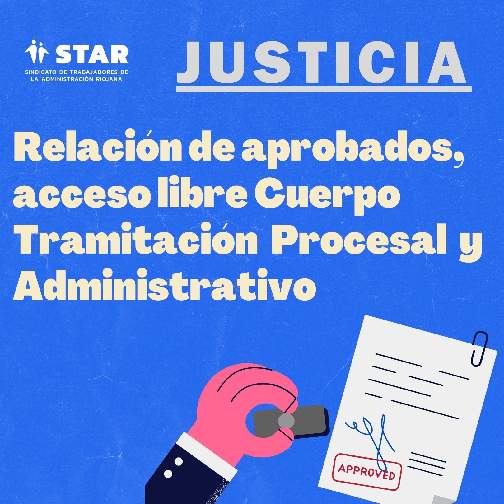 Se publica la relación de personas aspirantes aprobadas en el proceso selectivo para ingreso, por el sistema general de acceso libre, al Cuerpo de Tramitación Procesal y Administrativa de la Administración de Justicia, convocado por Orden JUS/1254/2022, de 7 de diciembre. Ver enlace