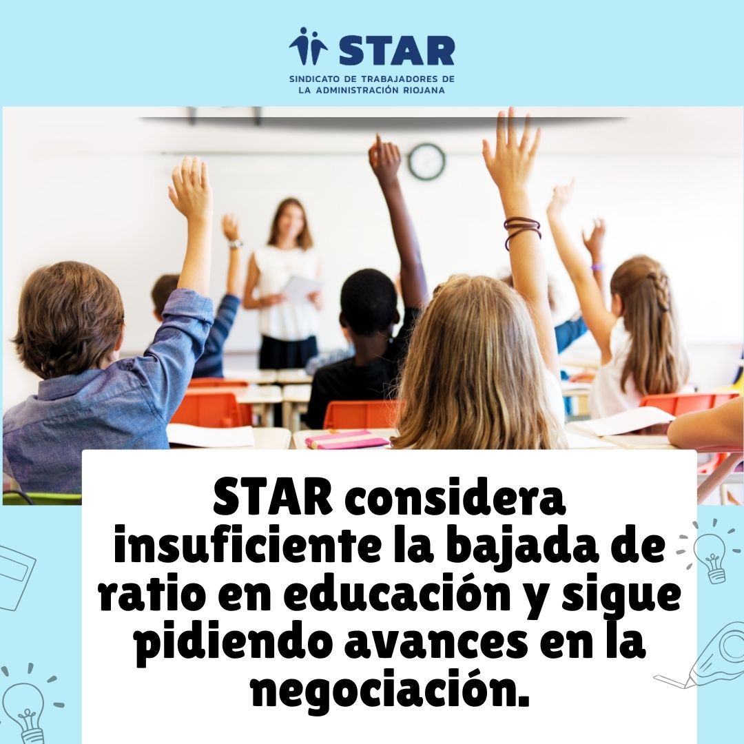 STAR valora la bajada de ratio pero la considera insuficiente y manifiesta su disconformidad con la zona única de escolarización. Por otro lado, tras la mesa sectorial de hoy STAR continua reivindicando una negociación más efectiva que revierta la inactividad existente desde principio de curso.