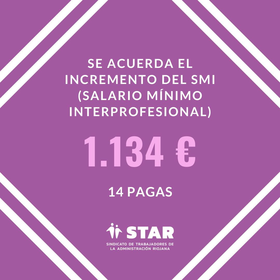 En la mañana de hoy se ha acordado incrementar el SMI (Salario Mínimo Interprofesional), que pasa de los 1.080 a 1.134 Euros en catorce pagas, que supone un 5% de incremento sobre el valor inicial.